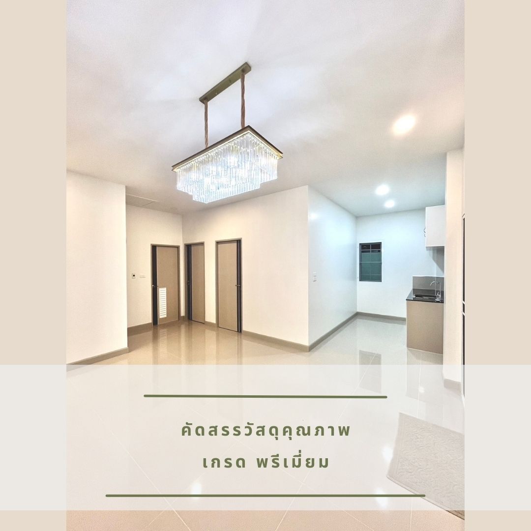 เนื้อที่ 87 ตารางวา ขนาดบ้าน 125 ตารางเมตร แบ่งสัดส่วนลงตัว มีห้องโถงรับแขก ห้องนั่งเล่น แยกกับโซนรับประทานอาหารชัดเจน พร้อมครัว Build in ภายในตกแต่งด้วยวัสดุเกรดพรีเมี่ยม